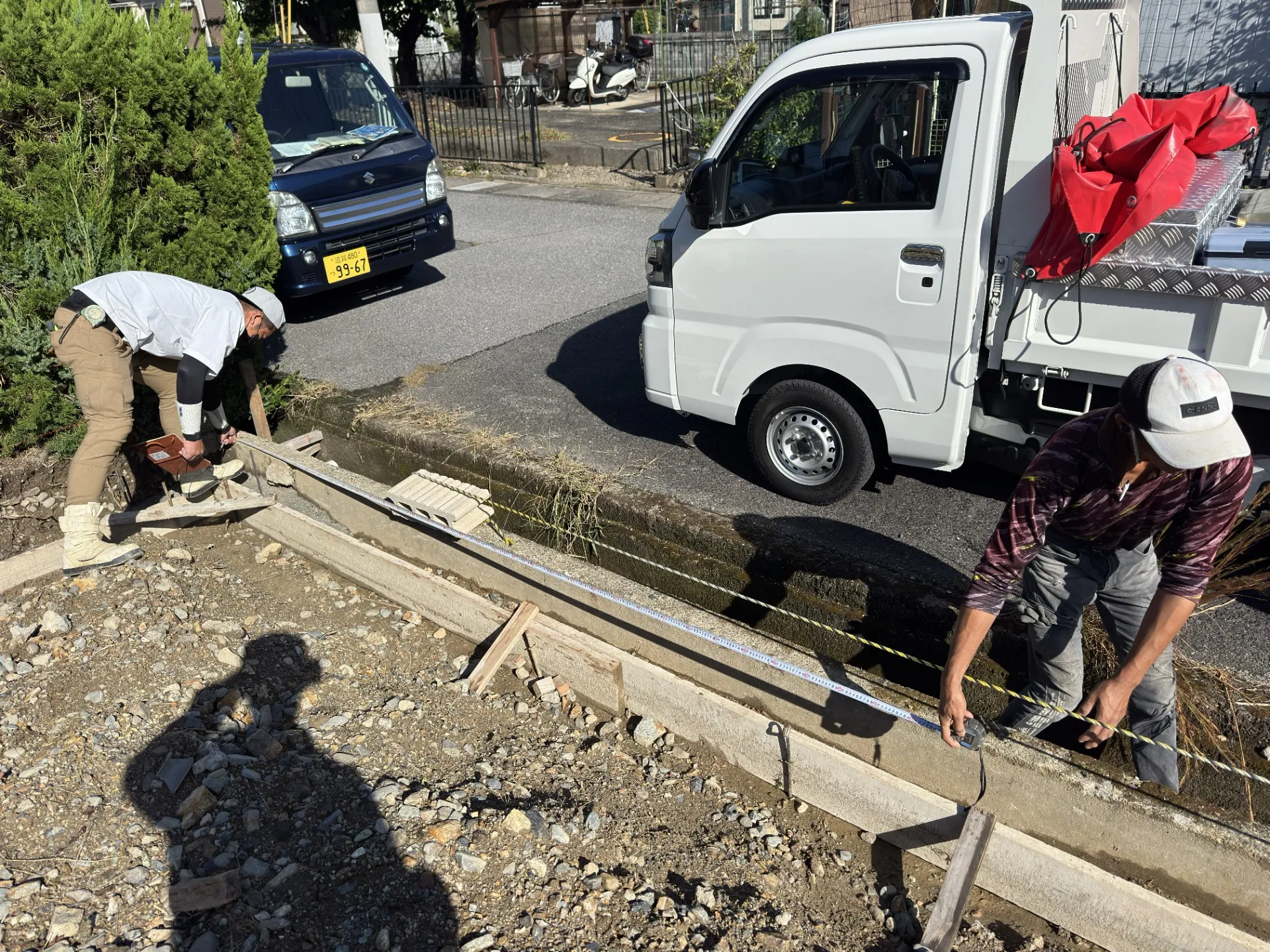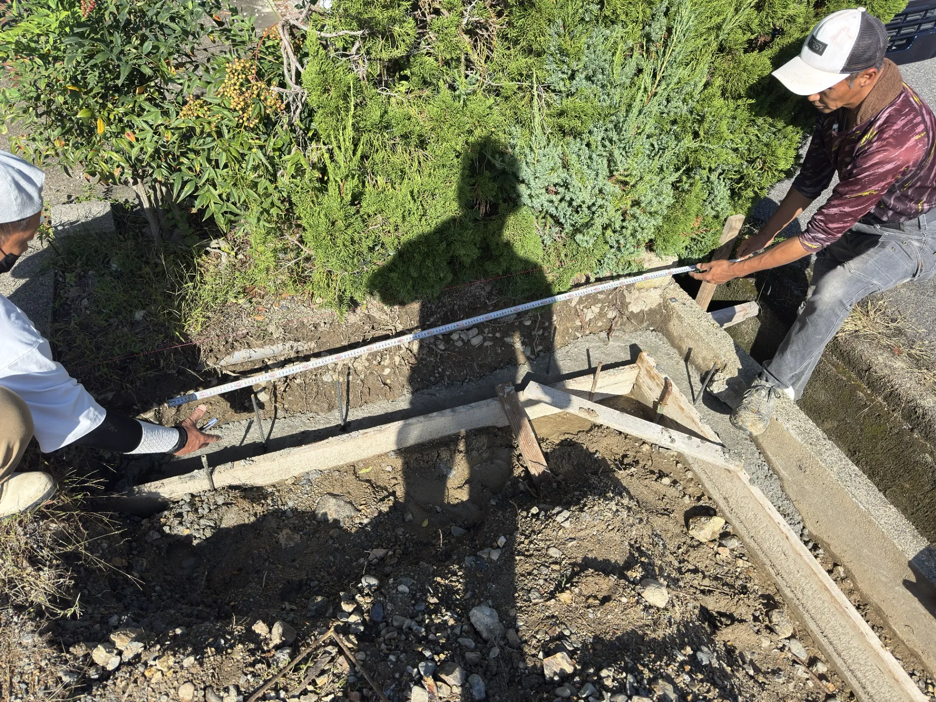 新築の工事ですが、まずは家が建つ前の一次外構工事。